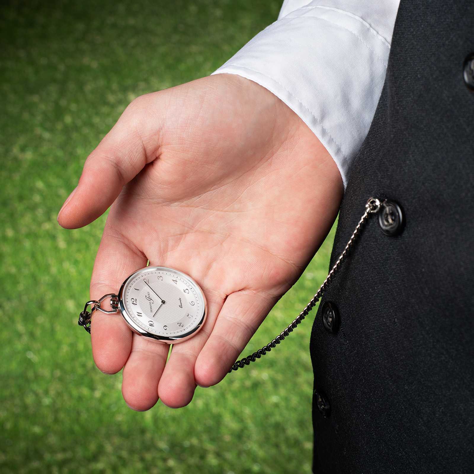 Produktinformationen "Hermann Jäckle Dresden Quarz Taschenuhr Mineralglas mit Kette & Etui"