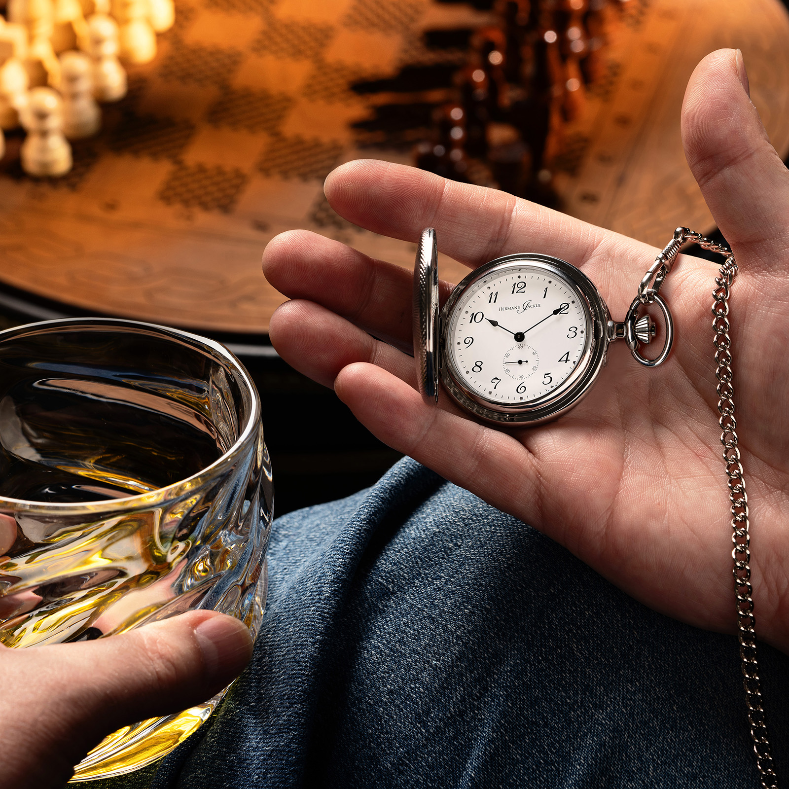 Entdecke zeitlose Eleganz mit der Hermann Jäckle Freiburg Quarz Taschenuhr inklusive stilvoller Kette & Reiseetui. Mit Ihrem großen handschmeichelnden Gehäuse, und dem hochwertigen Uhrwerk, verkörpert sie Präzision und Stil. Dein Begleiter für besondere Momente.