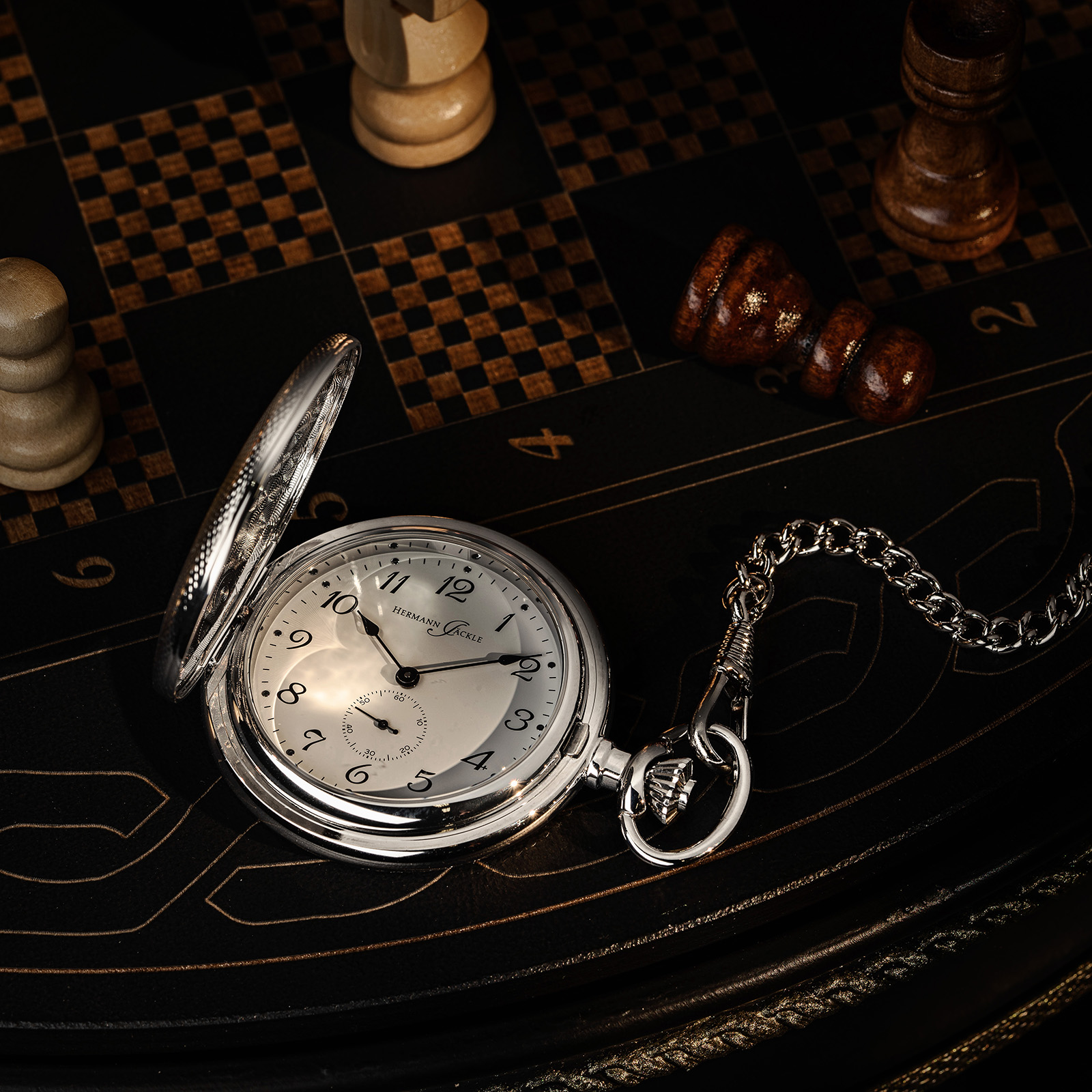 Produktinformationen "Hermann Jäckle Freiburg Quarz Taschenuhr mit Kette & Reiseetui 48 mm"